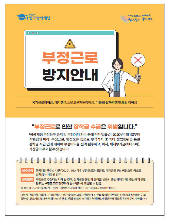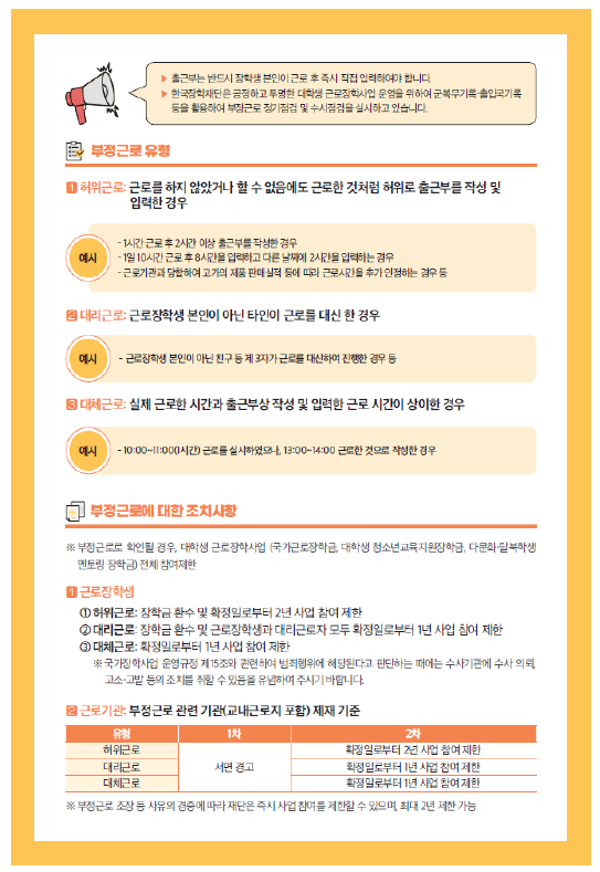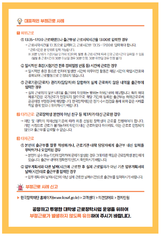 [공지] [근로장학] 부정근로 방지★필독: 국가근로장학 및 대학생청소년교육지원 사업 참여자